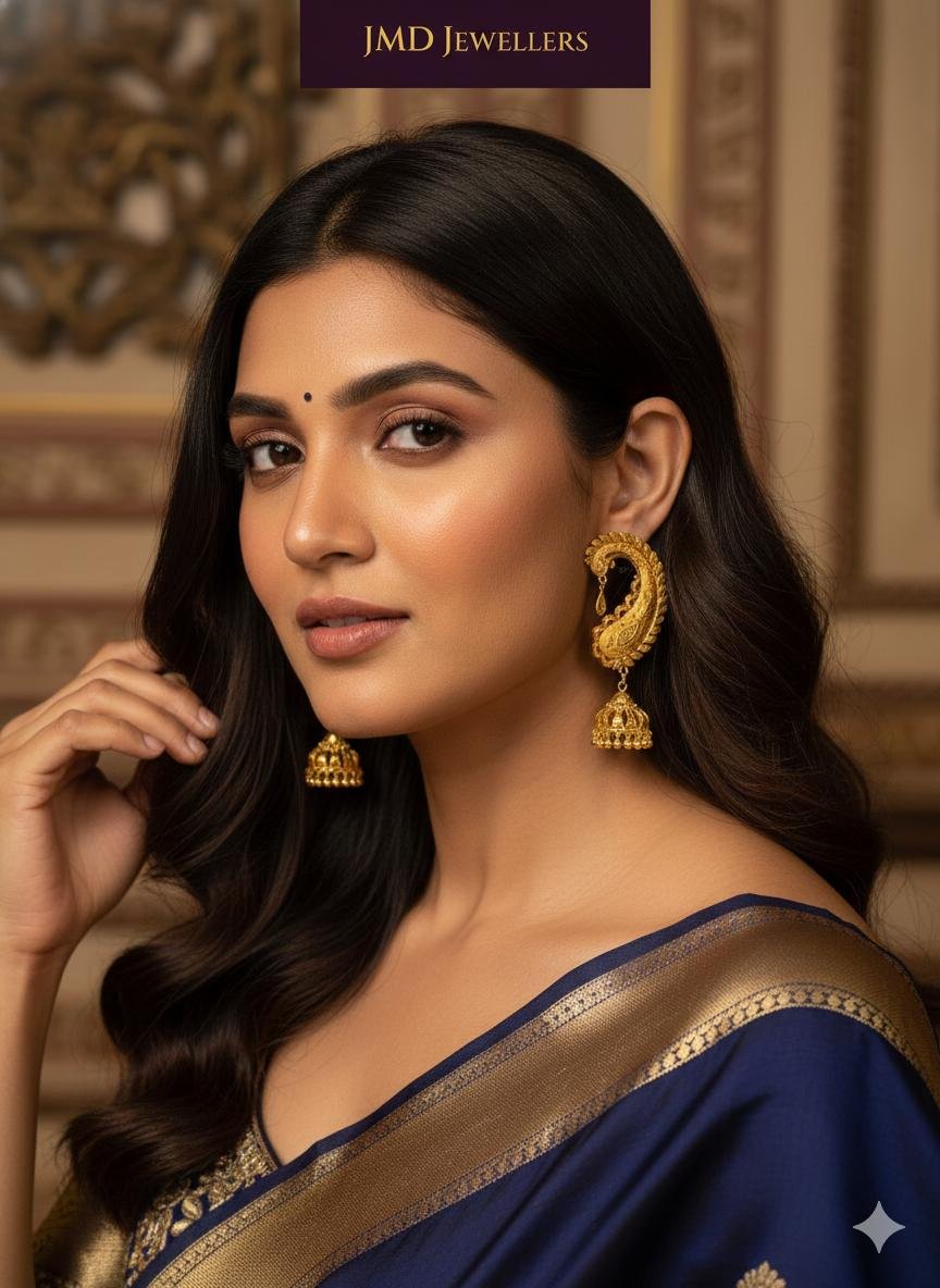 Indulge in the timeless allure of traditional craftsmanship with these exquisite Jhumkas from JMD JEWELS. Designed for the modern woman who cherishes her roots, these earrings are a perfect blend of heritage and sophistication.