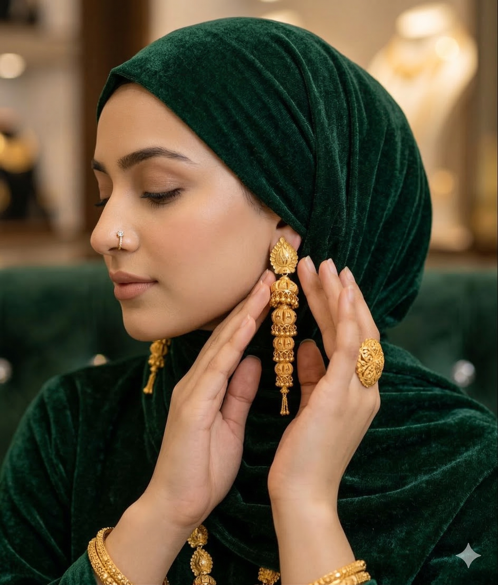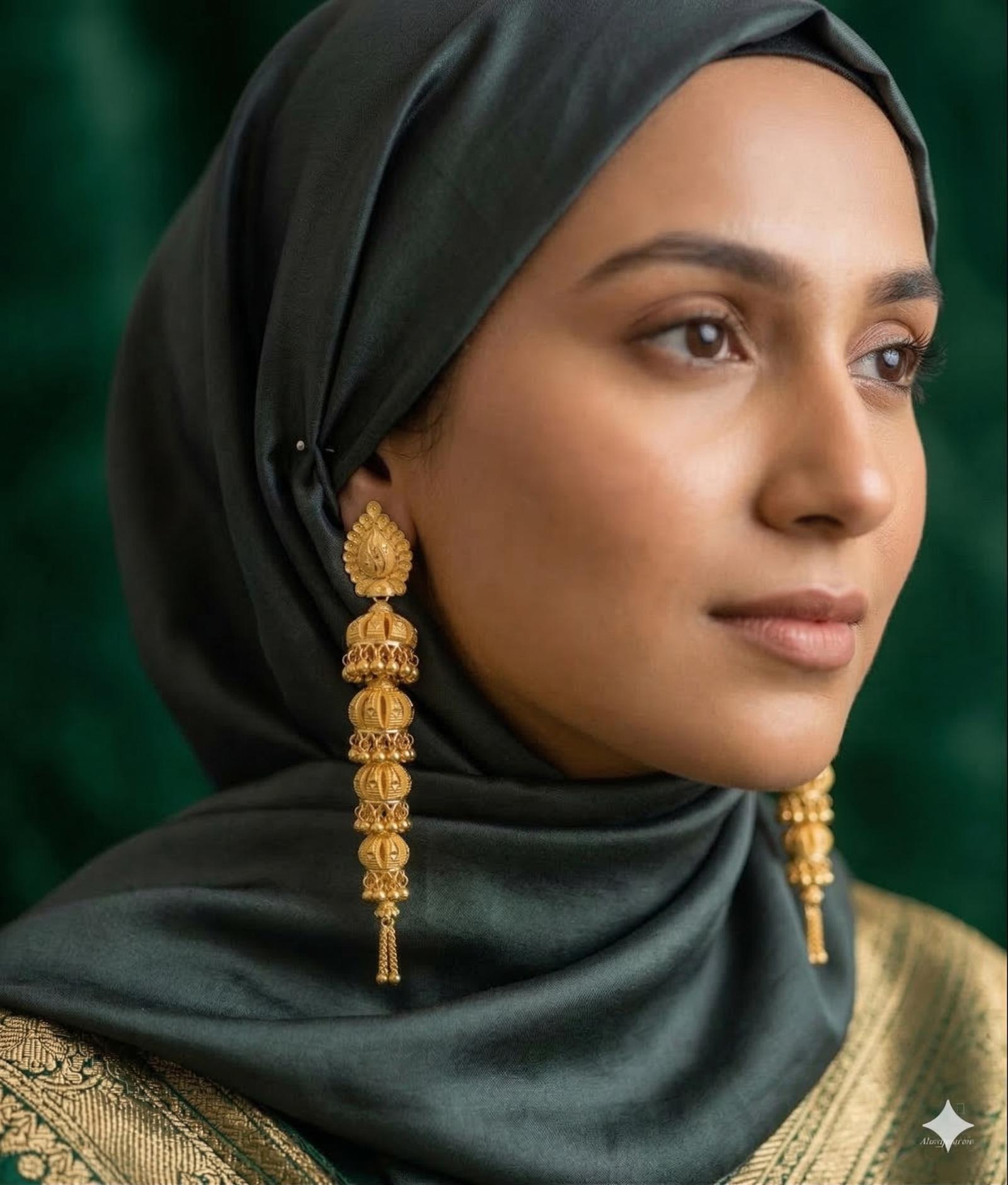 Design: Intricate Turkish filigree work featuring delicate textures and a majestic long-drop silhouette.