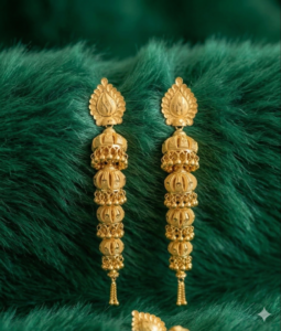 Elevate your jewelry collection with these breathtaking Turkish-style Gold Jhumkas, a perfect fusion of Middle Eastern grandeur and traditional elegance. Designed for the modern woman who appreciates intricate craftsmanship, these long-form earrings are a true statement piece from JMD Jewels.