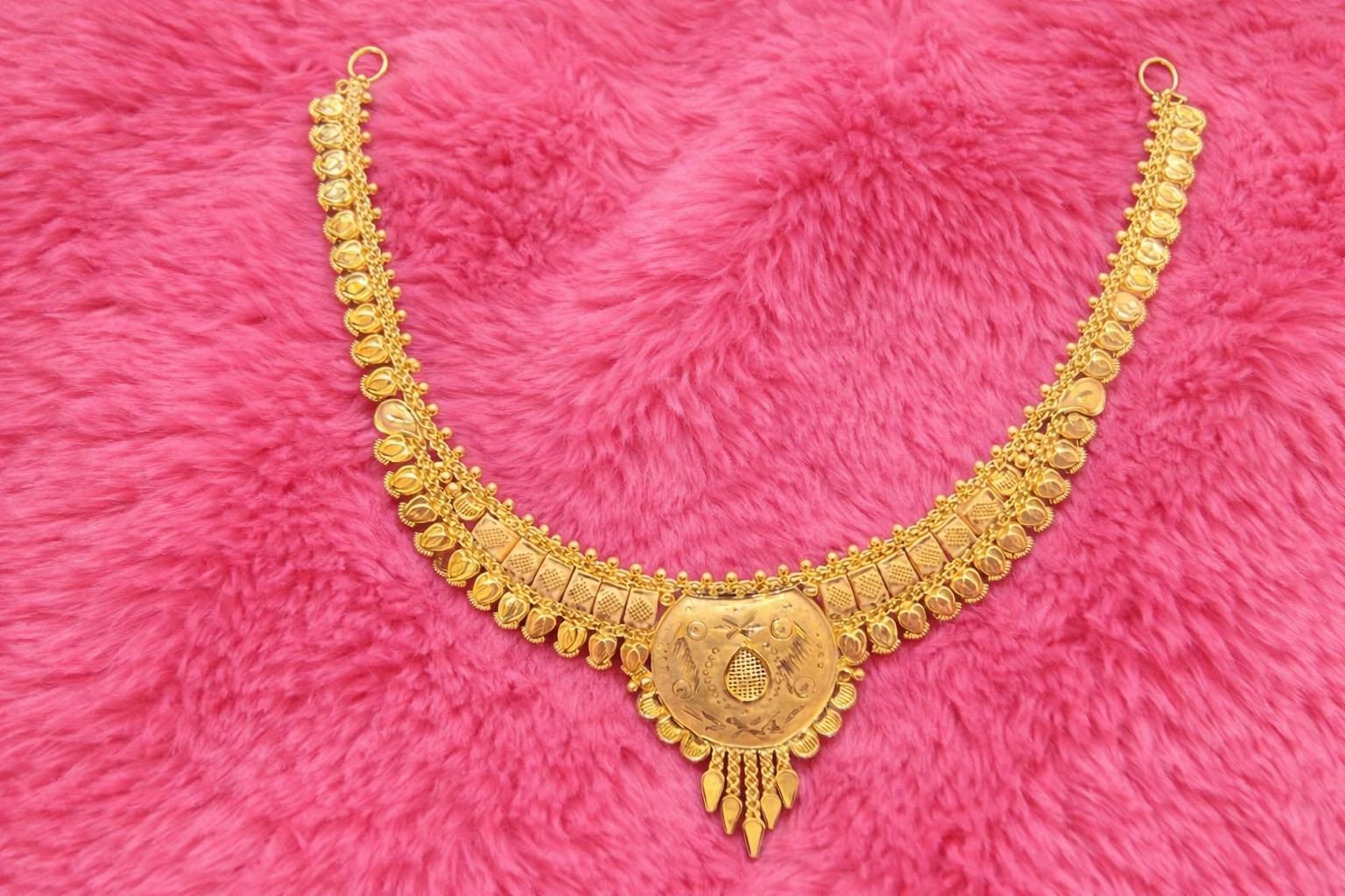 • The 22K Glow: Crafted in 22 Carat gold, the piece radiates that deep, rich yellow hue that is synonymous with high-quality Indian jewelry.