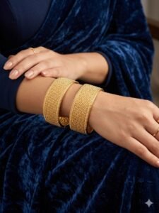 The Craftsmanship: Turkish net designs are known for their flexibility and “fabric-like” feel in gold, making a heavy 50-gram piece surprisingly comfortable while looking massive.