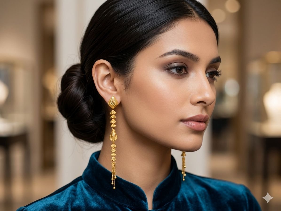 Turkish Grace. JMD Excellence. 👑 Featuring our latest 22KT Long Oxidized Earrings. ⚖️ Weight: 6.210 Grams ✅ HUID Hallmarked 📍 Visit JMD JEWELS to claim yours.